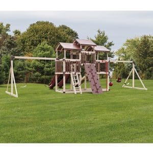 Wooden swing sets for children are a thing of the past. Our outdoor playsets and swings sets for sale are maintenance-free and made from the most durable materials available. Since all wood is cased in vinyl sleeves, there is no splintering and no need for upkeep with a backyard swing set from Adventure World Play Sets. Outdoor playsets should be a place for playful fun, so take the worry out with a custom-made set from Adventure World Play Sets.