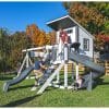 TOWER: 5’x5′ Playhouse, 5’x8′ Base, 3’x5′ Play Deck, 5’x8′ Tower, 5′ & 7′ Deck Heights