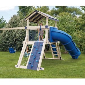 Wooden swing sets for children are a thing of the past. Our outdoor playsets and swings sets for sale are maintenance-free and made from the most durable materials available. Since all wood is cased in vinyl sleeves, there is no splintering and no need for upkeep with a backyard swing set from Adventure World Play Sets. Outdoor playsets should be a place for playful fun, so take the worry out with a custom-made set from Adventure World Play Sets.