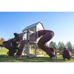 TOWER: 8′ x 8’ Base, 5’ x 5’ Playhouse, 3′ x 8′ and 3′ x 5′ Wrap-Around Playdeck, 5′ Deck Height